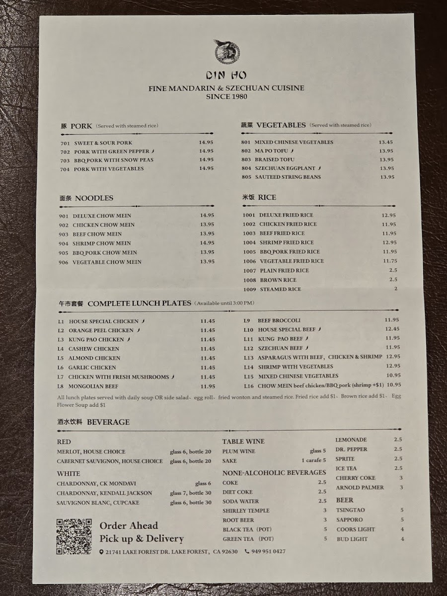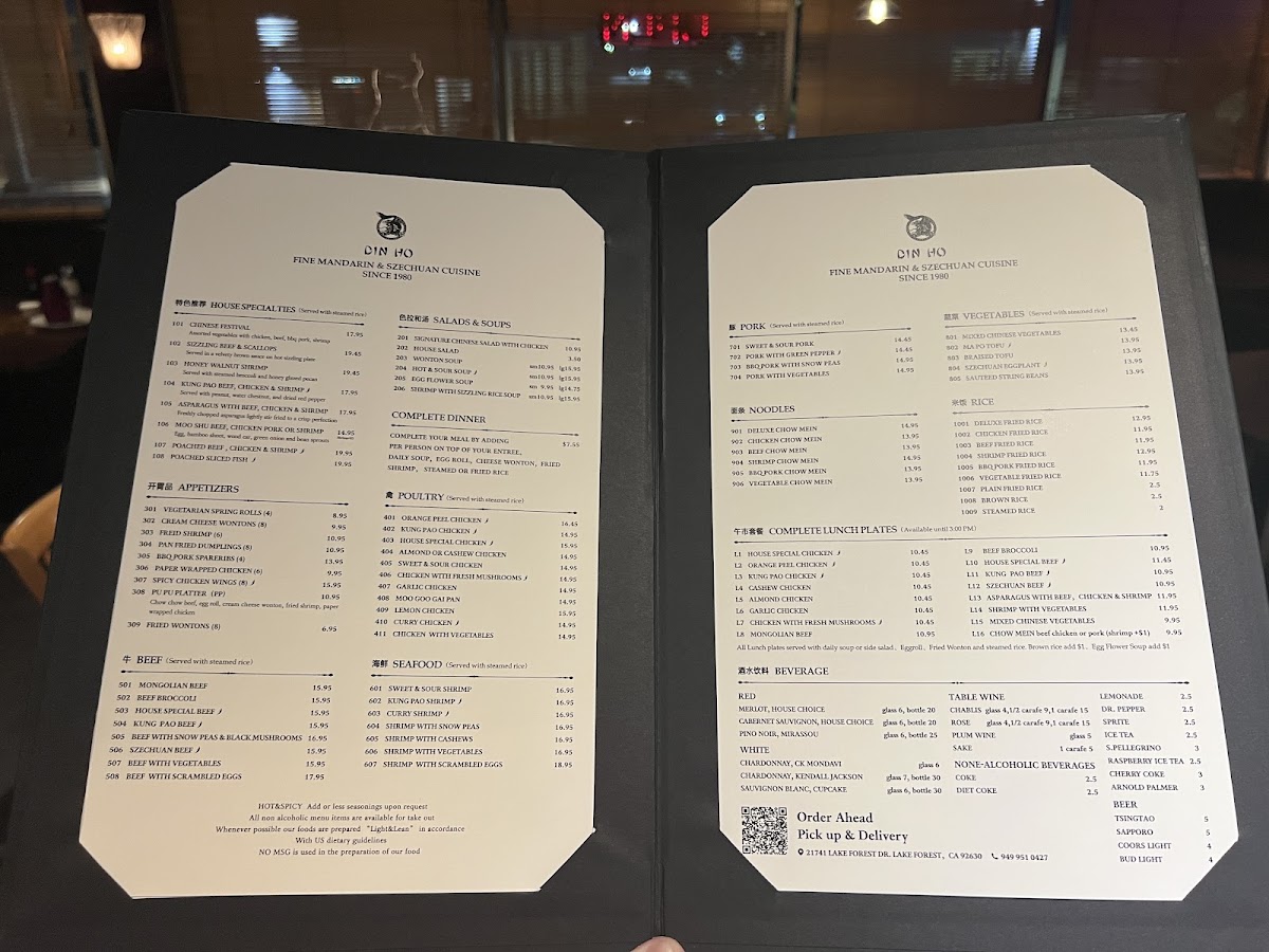 Nestled in Lake Forest, California, Din Ho Chinese Cuisine brings authentic flavors and culinary excellence to your dining experience. With a rich history of 43 years, the restaurant has earned a loyal following.